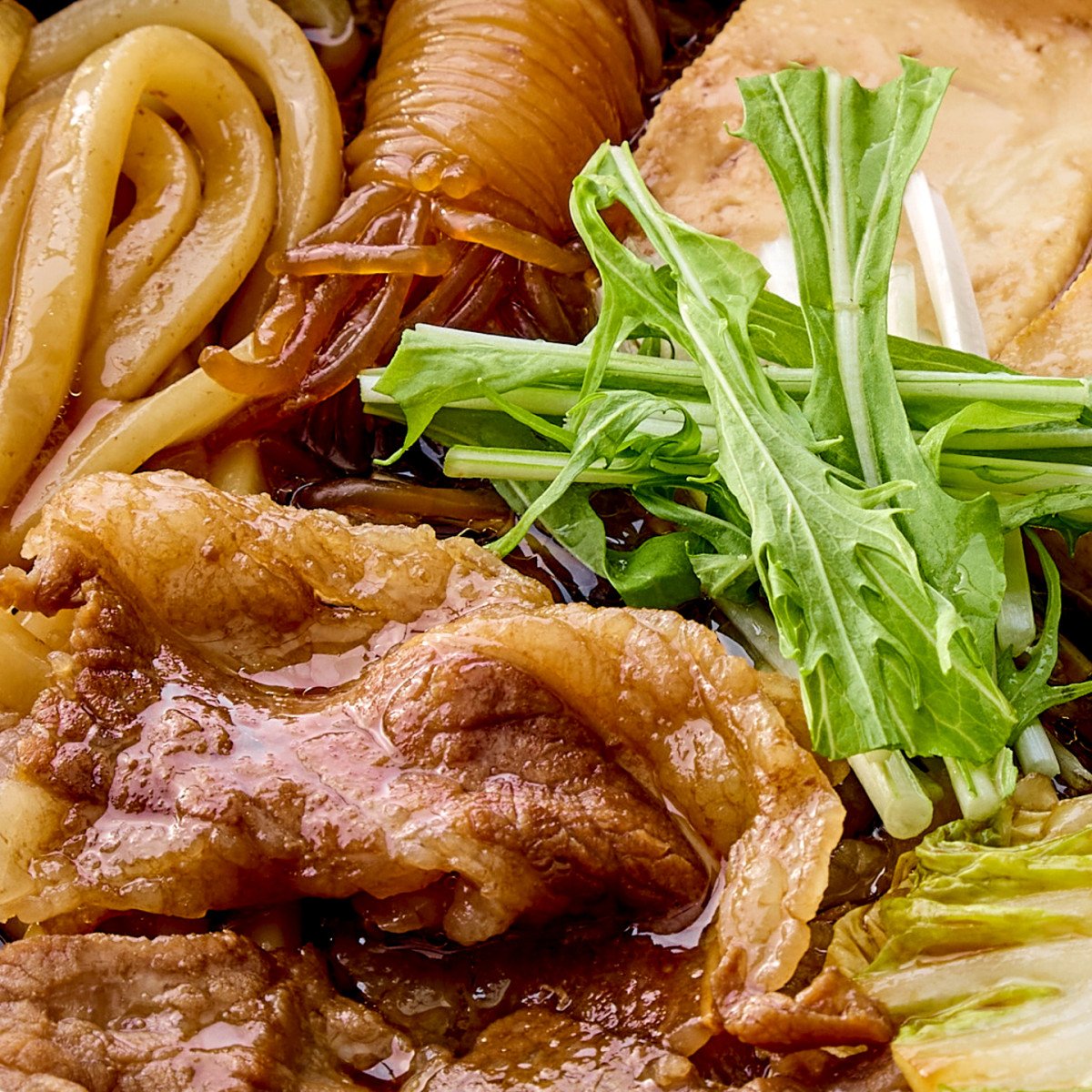 This hearty dish is packed with tender beef, vegetables, and even Sanuki udon noodles simmered in a sweet-savory sauce🍲