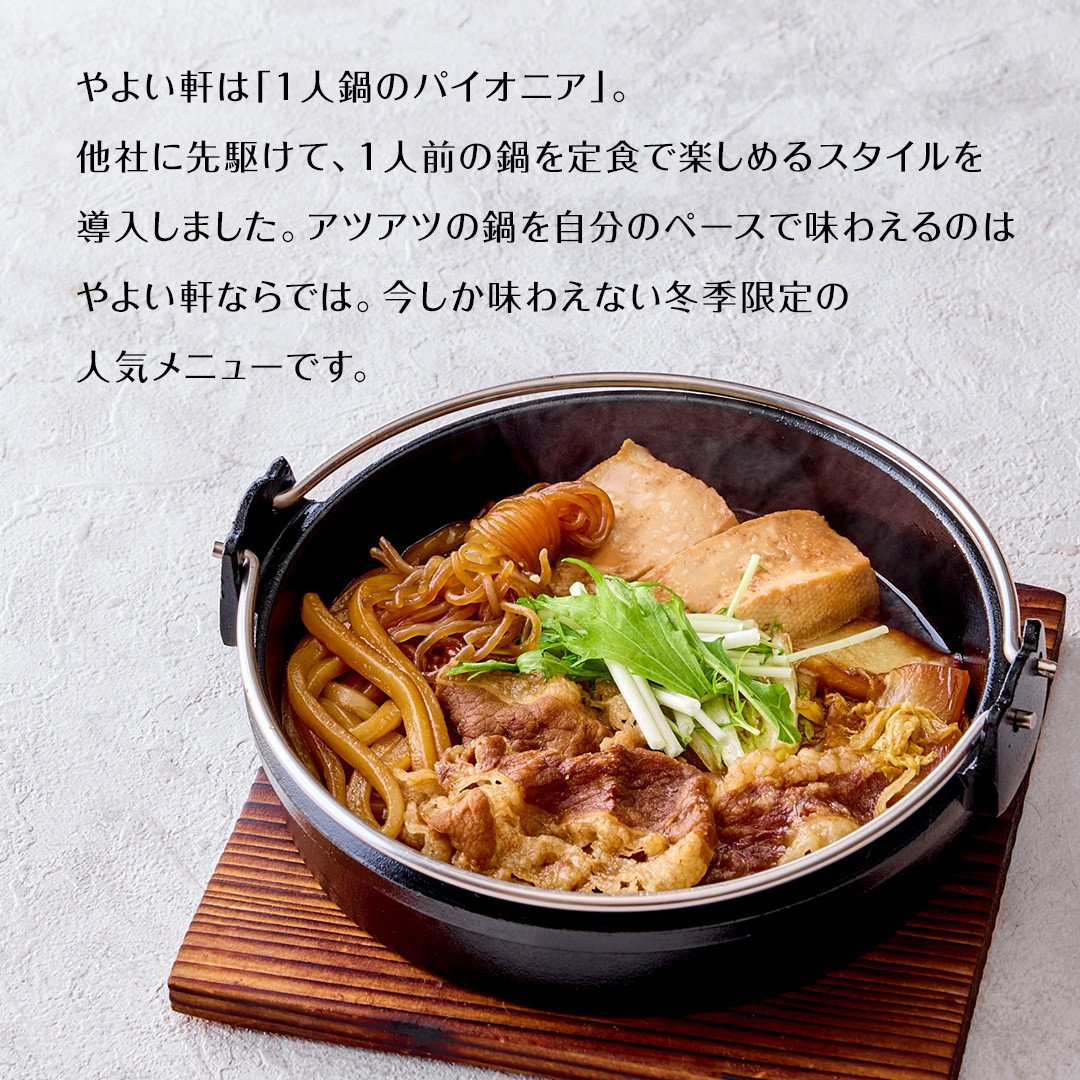 他社に先駆けて、1人前の鍋料理を定食として導入したのはやよい軒!