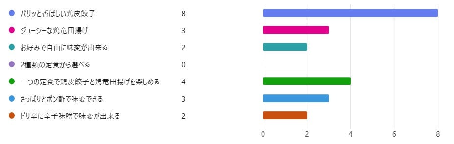 調査内容:『鶏皮餃子と鶏竜田揚げの定食』のおすすめポイントを選択肢の中から2つ選択