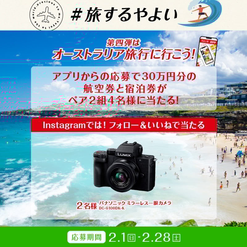 “「#旅するやよい」【第四弾】アプリで応募してオーストラリア旅行に行こう!”は、「やよい軒」公式アプリより参加が可能です。