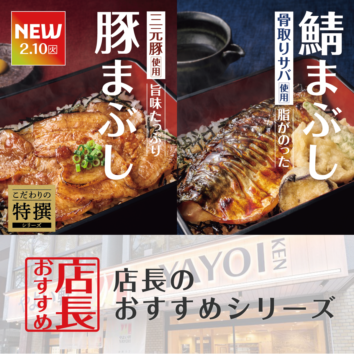 魅力がここに!「やよい軒」全国の店長が選んだ、 『~三元豚使用~豚まぶし定食』 『~骨取りサバ使用~焼サバと天ぷらのまぶし定食』 おすすめポイント!