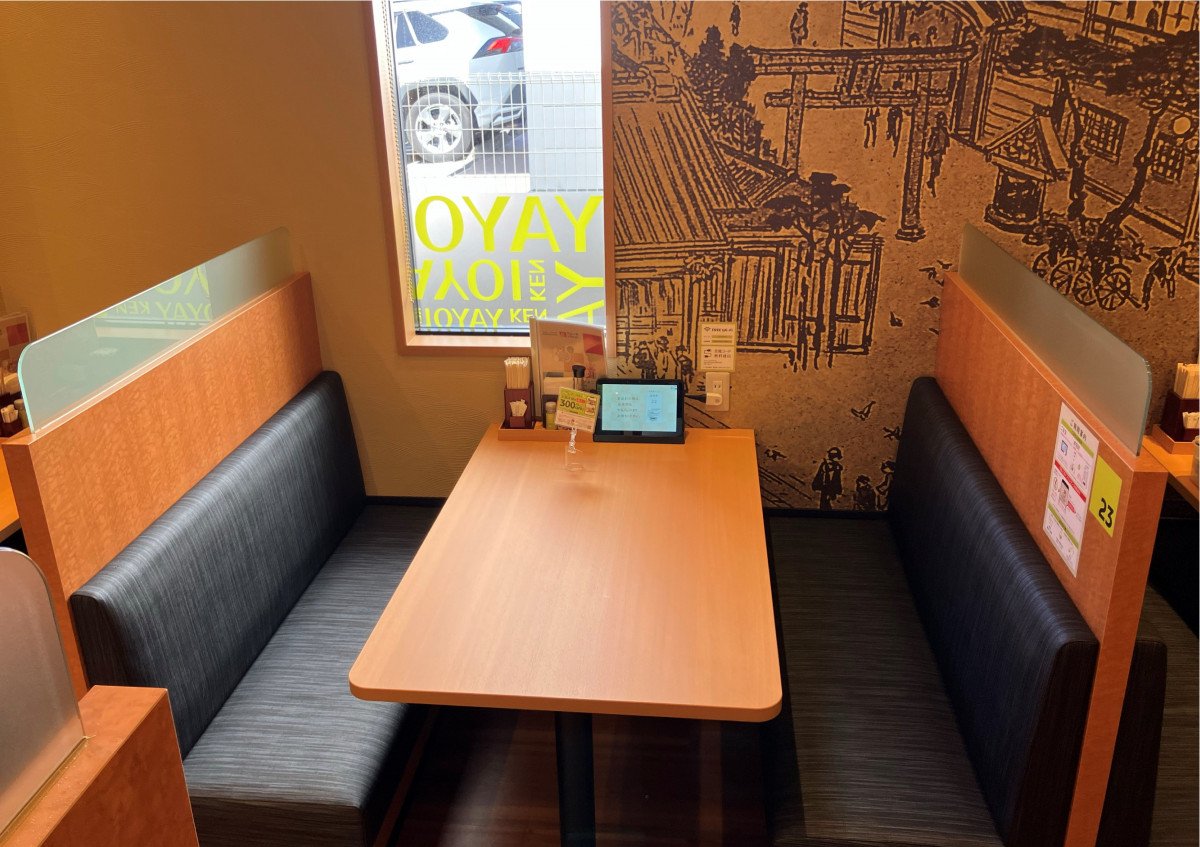 当店舗は2023年12月に公開しましたロゴ・シンボルマークなど新しいブランドイメージを表現した店舗となっております。ロゴ看板、モダンな“和”をイメージさせる暖簾(のれん)や「やよい軒」の名前のルーツでもある“彌生軒(やよいけん)”の歴史的資料をモチーフとした壁紙など、ブランドステートメントを表現する“上質な”イメージでデザインされた店舗です。また、ゆっくりとメニューを選んでいただけるようテーブルに設置したタブレット端末からのオーダーや店舗限定デザートメニューの導入、さらにドリンクバーを設置することでくつろぎの時間を過ごしていただけるようにしました。 もちろん、“ごはん”や“だし”、“漬け物”のおかわり自由が楽しめる『おかわり処』もございます。