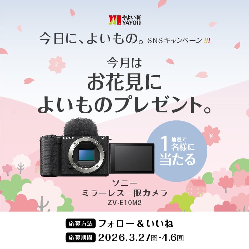 日本国内の「やよい軒」では、やよい軒公式X・公式Instagramにおいて、2025年3月より毎月『今日に、よいもの。』キャンペーンを実施しております。3月は『お花見によいもの』をプレゼント!毎月催事に合わせたプレゼントをご用意しておりますので、ぜひ、この機会にキャンペーンにご参加ください。
