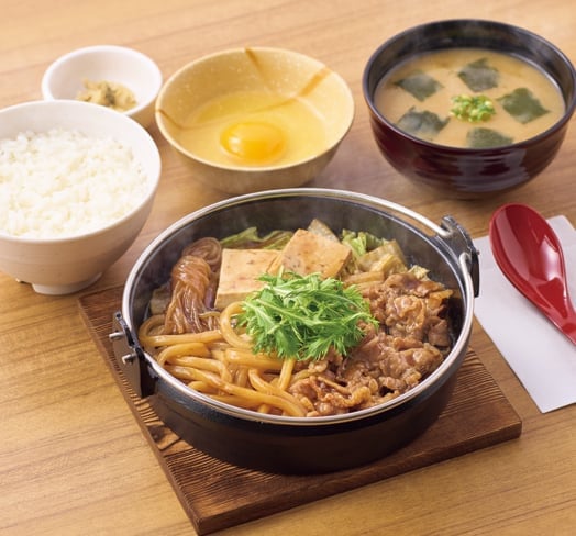 たっぷりの牛肉と野菜、讃岐うどんを3種の本醸造醤油とみりんをブレンドした旨味豊かなたれでじっくりと煮込みました。